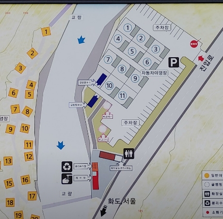 캠핑장은 오토캠핑장과 일반 캠핑장으로 구분되며, 각각의 사이트에서 전기 사용이 가능합니다. 오토캠핑장은 차량 주차가 가능하며, 트레일러와 카라반 진입도 가능해 편리한 캠핑을 도와줍니다. 일반 캠핑장은 수동계곡을 따라 위치해 있으며, 그늘이 많고 계곡물이 흐르는 아름다운 환경을 제공합니다.