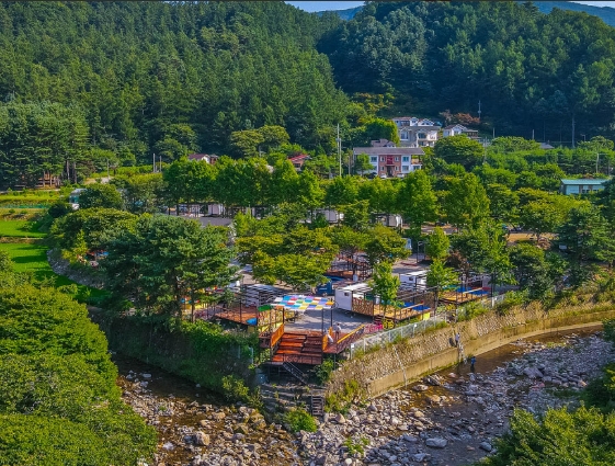 어린이 놀이터, 방방이, 실내 놀이공간 등 아이들이 즐길 수 있는 여러 시설이 마련되어 있어 가족 단위의 방문객에게 적합합니다. 계곡 바로 옆에 위치하여 여름에는 물놀이를 즐길 수 있고, 주변 자연과 어우러진 캠핑을 경험할 수 있습니다. 저녁 8시부터 다음날 오전 10시까지 매너 타임이 설정되어 있어, 조용하고 평화로운 캠핑 환경을 유지하고 있습니다.