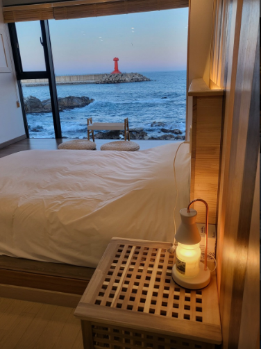 숙소는 넉넉한 안방과 사랑방, 넓은 거실과 빈티지 스타일의 욕실을 갖춘 '모두랑 방'과 포근한 분위기의 '포그니 방', 한옥의 멋을 담은 '해오름 방', 그리고 별을 헤아릴 수 있는 '별헤는 루프탑' 등 다양한 방을 제공하여 방문객의 취향과 필요에 맞춰 선택할 수 있습니다. 각 방에서는 죽도해변과 인구해변을 조망할 수 있으며, 동해의 일출과 아름다운 해변 풍광을 감상할 수 있습니다.