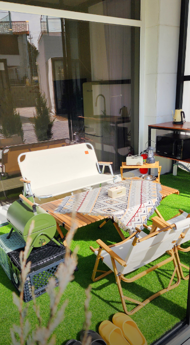 캠핑 감성과 '촌캉스' 감성을 동시에 느낄 수 있는 힐링 공간으로 설계되었습니다. 숙소는 개별 바베큐 시설을 제공하며, 웨버그릴 숯과 석쇠 세트가 포함된 바베큐 이용이 가능합니다. 반려견 동반 입실이 가능한 객실이 있으며, 조건에 따라 추가 요금이 발생할 수 있습니다.