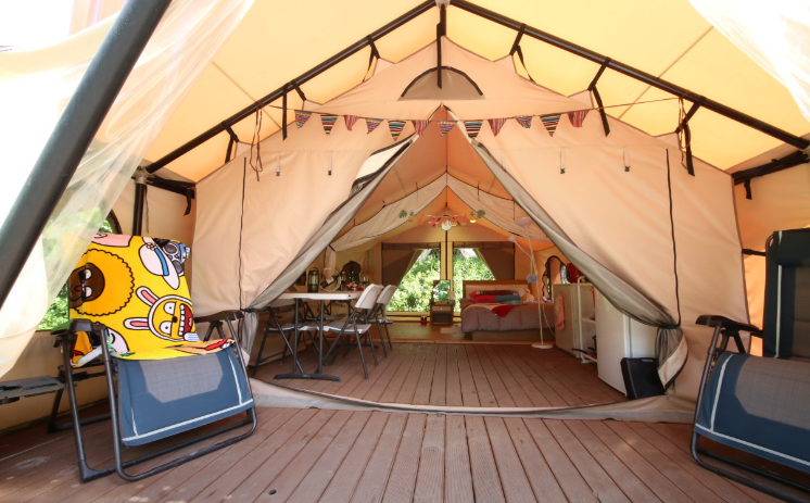 각 객실 옆에는 해먹이 설치되어 있어, 자연 속에서 휴식을 취할 수 있는 공간을 제공합니다. 캠핑장 내부에는 탁구대와 방방이 등의 여가 시설이 마련되어 있어, 다양한 액티비티를 즐길 수 있습니다.