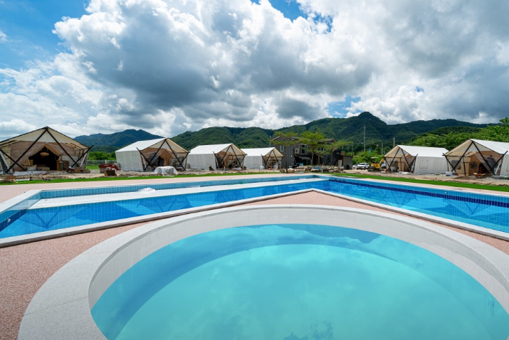 중앙공원과 야외 돔 수영장이 있어, 캠핑과 함께 다양한 야외 활동을 즐길 수 있습니다.