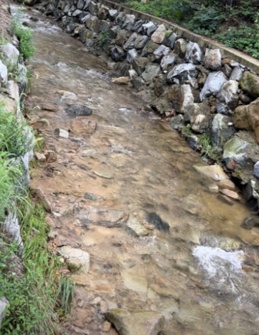 캠핑장 주변에는 작은 계곡이 있으며, 물놀이를 즐기기에는 약간의 거리가 있지만 시원한 물을 즐길 수 있습니다.
