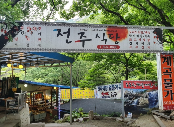 전주식당은 계곡의 시원함만큼이나 맛있는 한식 메뉴로 방문객들의 입맛을 돋웁니다. 신선한 재료로 정성껏 준비한 음식들은 푸짐한 양과 뛰어난 맛으로 칭찬이 자자합니다.