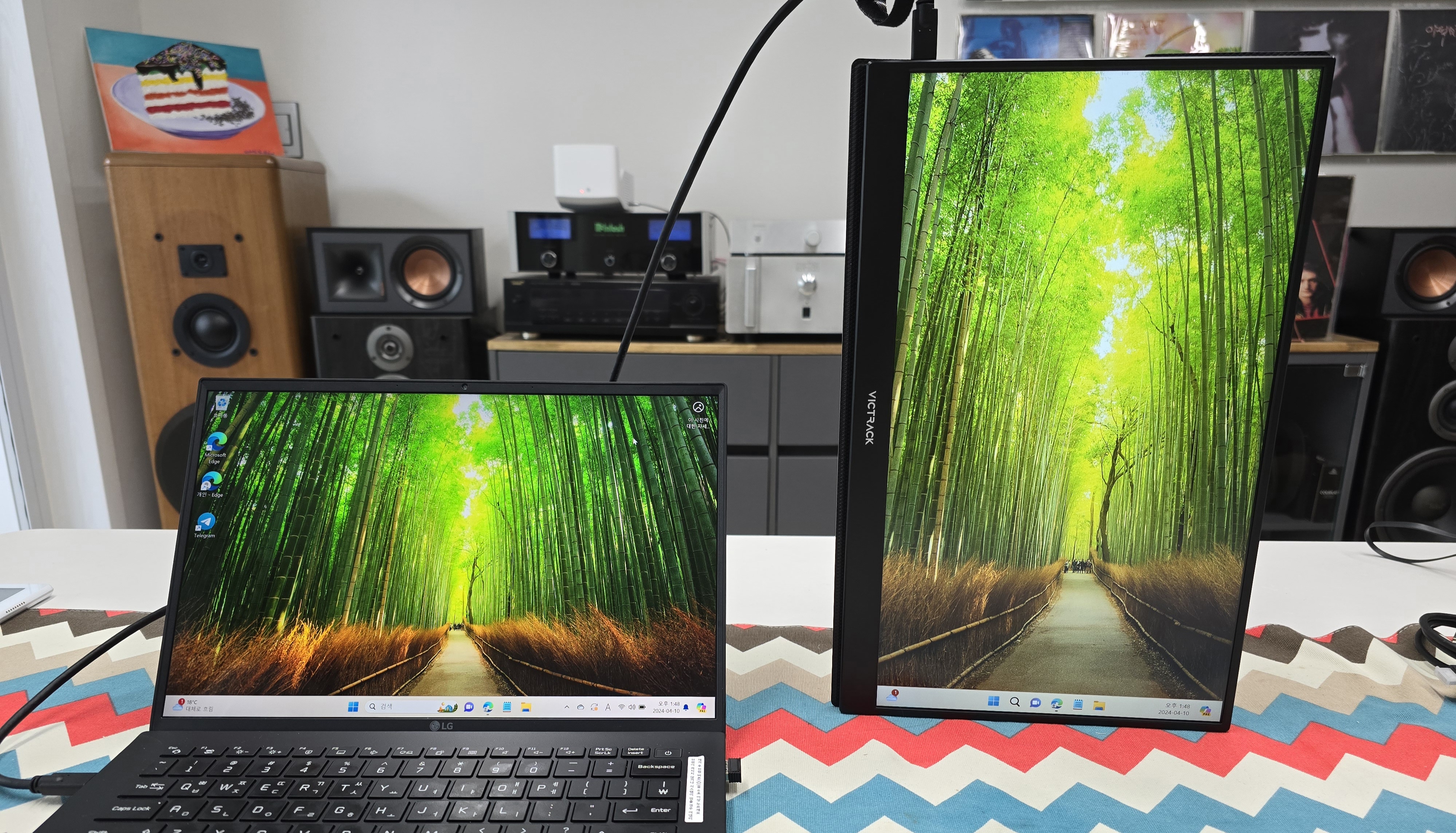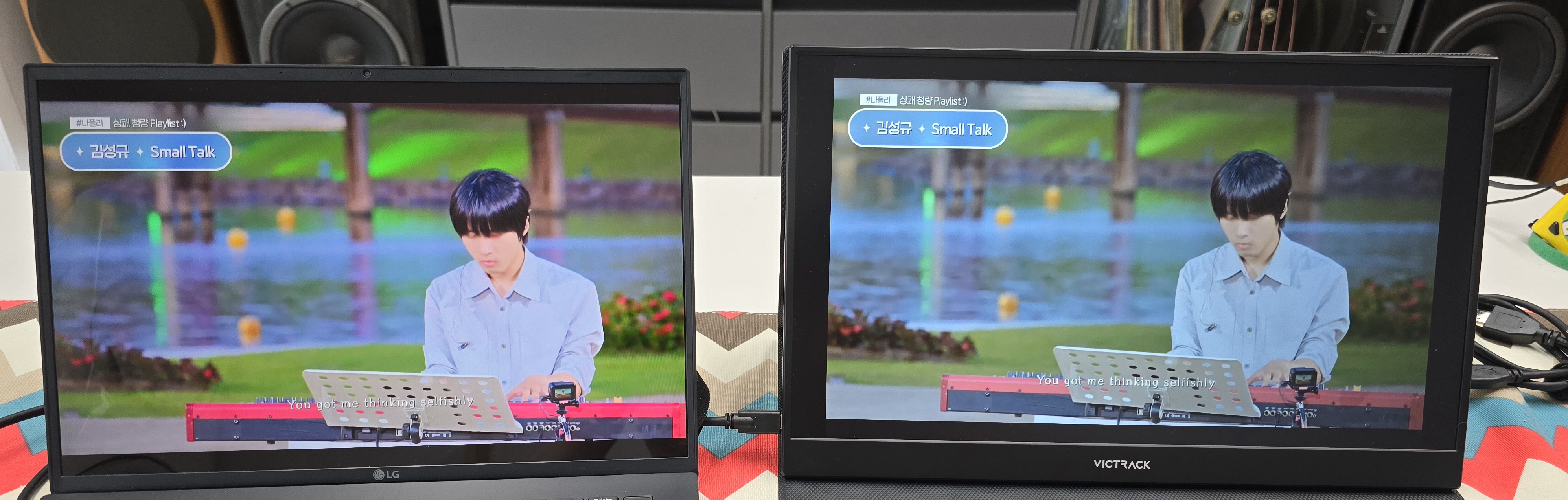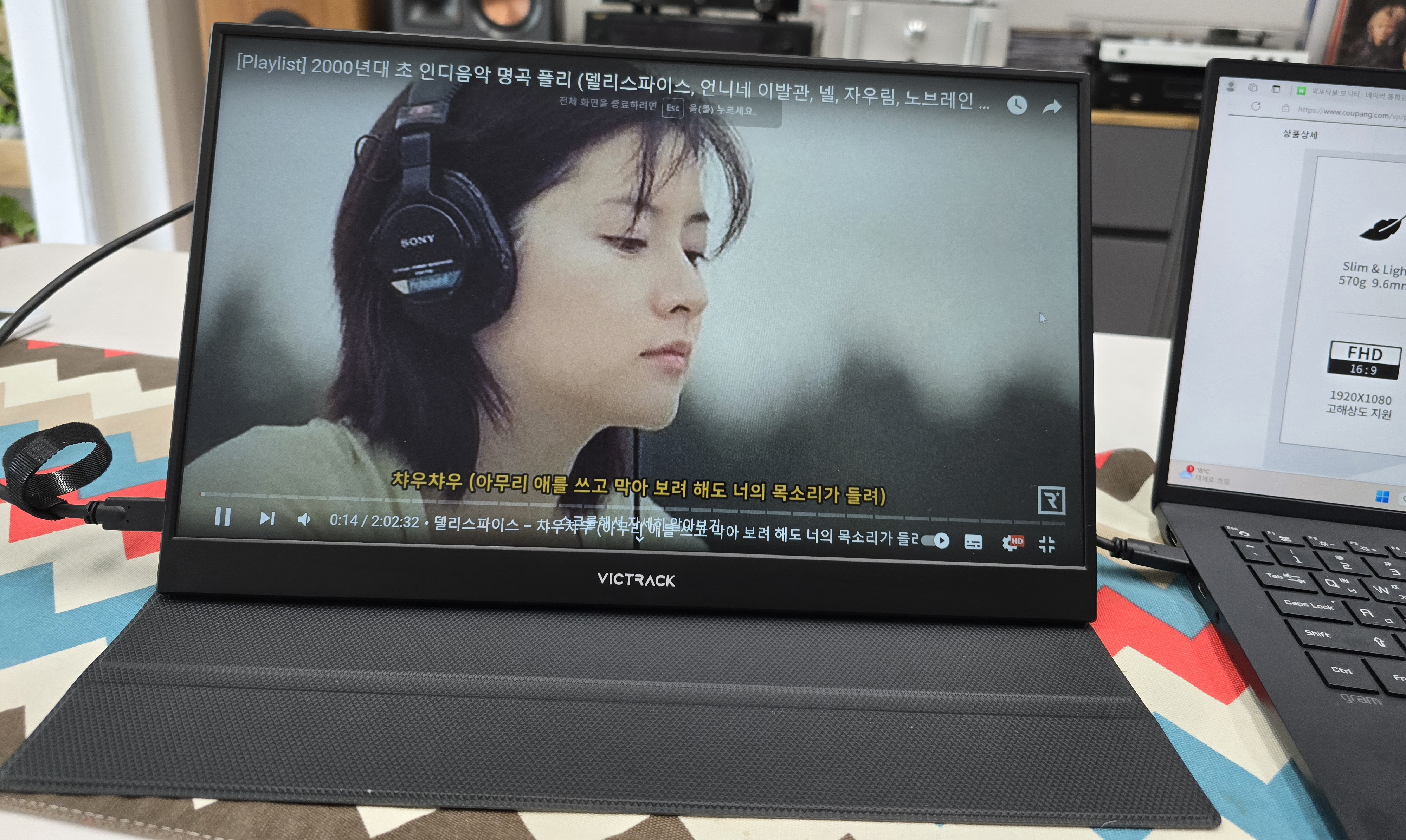 좌측이 lg그램, 우측이 빅트랙 포터블 모니터다.