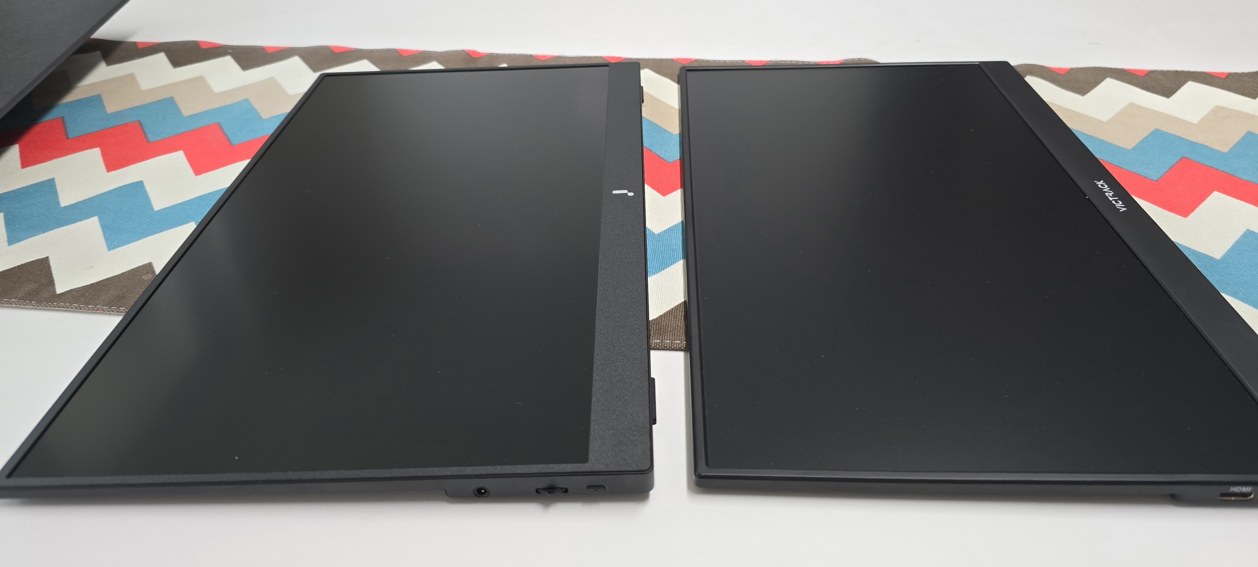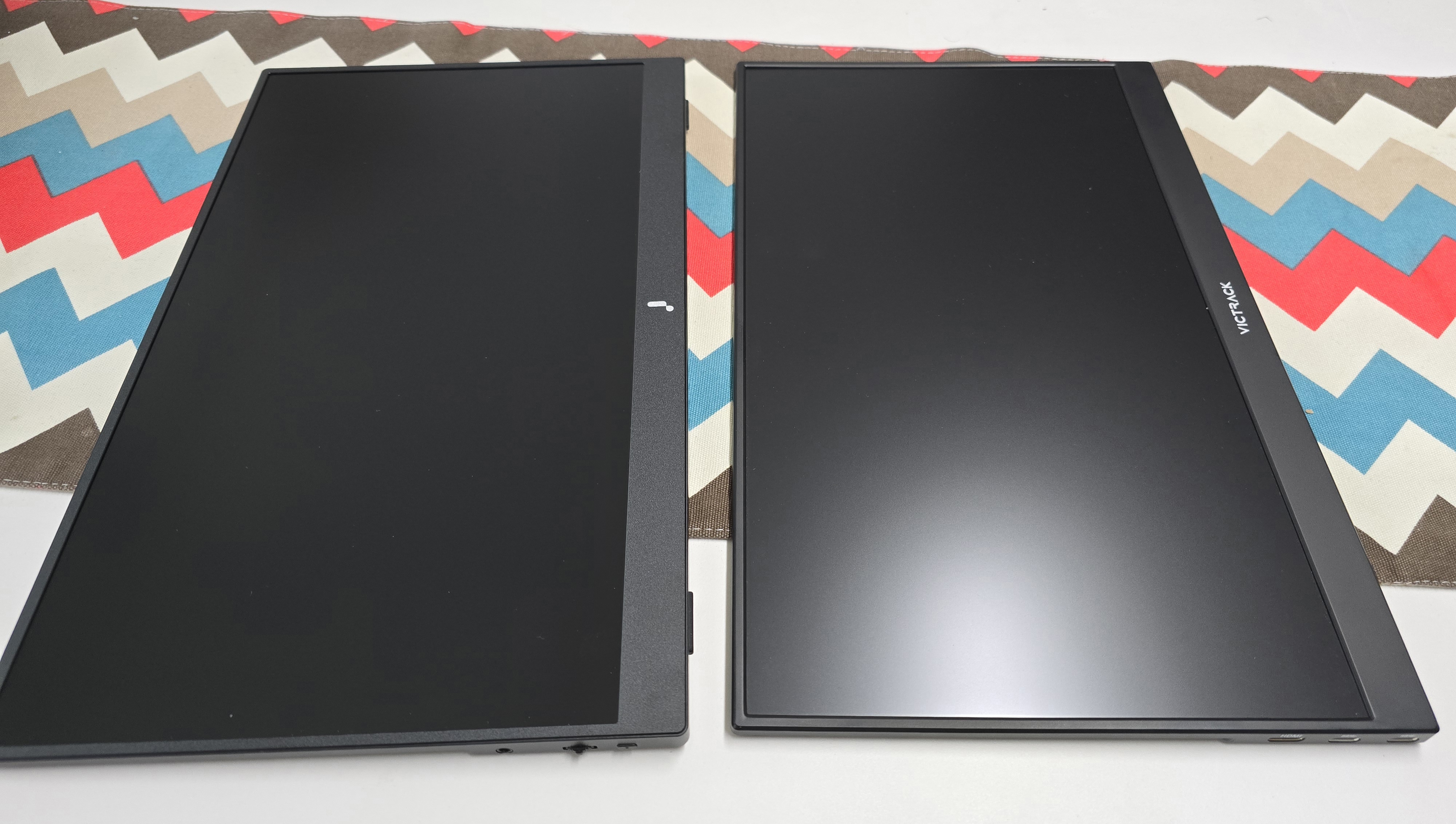 쿠팡서 파는 포터블 모니터중 저가제품(해외직구제외) 두개를 비교해 봤습니다. 13만원에서 15만원대 제품인데요(쿠팡회원할인기준). 15.6인치 두 모델로 주연테크 v156fp와 중국 빅트랙 156m01입니다.