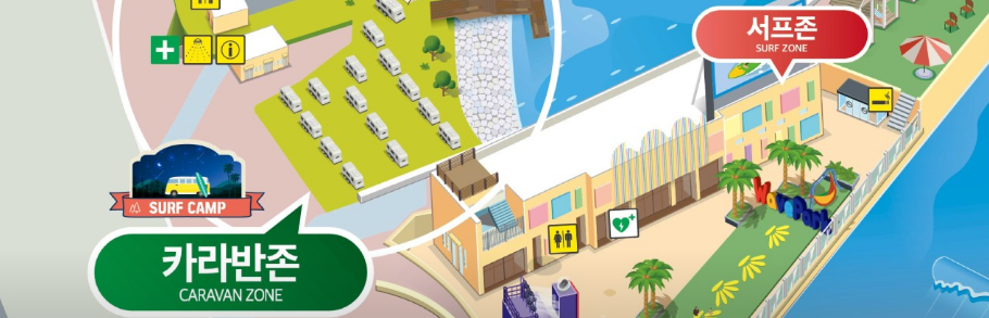 생긴지 얼마 되지 않아서 시설들은 깨끗하고, 웨이브파크와 웨이브파크 주변의 편의시설, 카페등을 이용할 수 있는게 장점입니다.